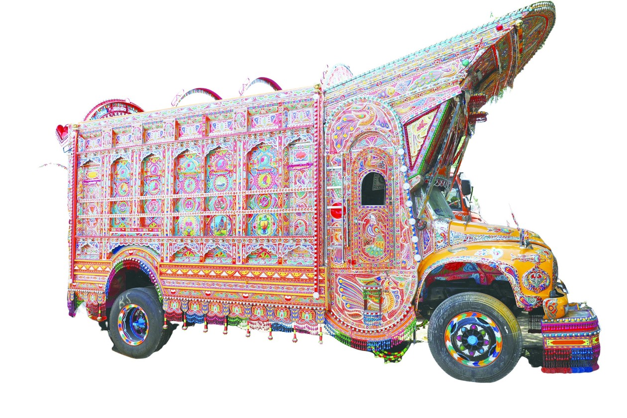 走在巴基斯坦街头,你一定会不自觉地被路过的大卡车吸引。因为这些大卡车一个比一个“招摇”,车身上画满各种花鸟虫鱼、栩栩如生的诗人、歌手、政治家……配色大胆明艳,图案繁复华丽。
