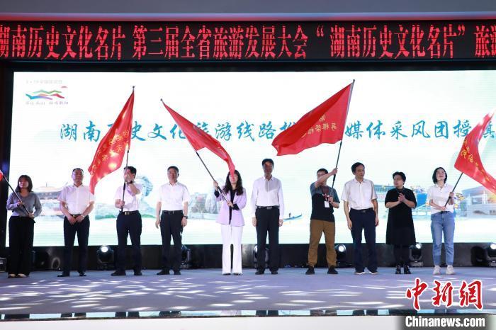 据悉,为深入挖掘湖南历史文化旅游亮点和趣味点,深入宣传推介5条历史文化名片旅游精品线路,增强历史文化旅游影响力及吸引力,近期,湖南将组织以“记者+旅行社代表+达人”的采风团,按照五条线路分任务、有重点、亮特色的方式进行实地采风报道,并进行宣传推介。活动现场还为湖南历史文化旅游推介采风团授旗。
