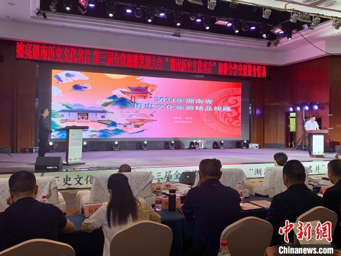 中新网衡阳5月21日电 (记者 鲁毅)“湖南历史文化名片”旅游合作交流推介活动20日在湖南省衡阳市南岳区举行。活动现场发布推介了2024年湖南省历史文化旅游精品线路,分别是寻根祭祖之旅、寻踪探源之旅、书院传承之旅、文物发现之旅和多彩民俗之旅。