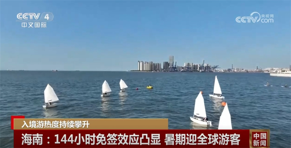 以热带岛屿风光著称的海南,在这个暑期也迎来世界各地的游客。在海口市西秀海滩帆船帆板运动基地,一个来自英国的研学团正在这里学习帆船帆板。