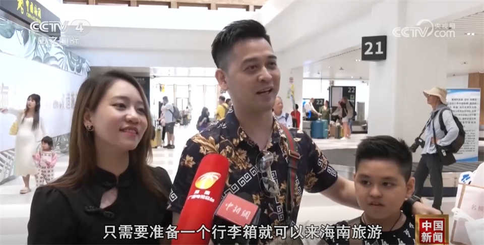 一名越南游客称:“只需要准备一个行李箱就可以来海南旅游,我们非常希望以后能有更多的便利政策。”