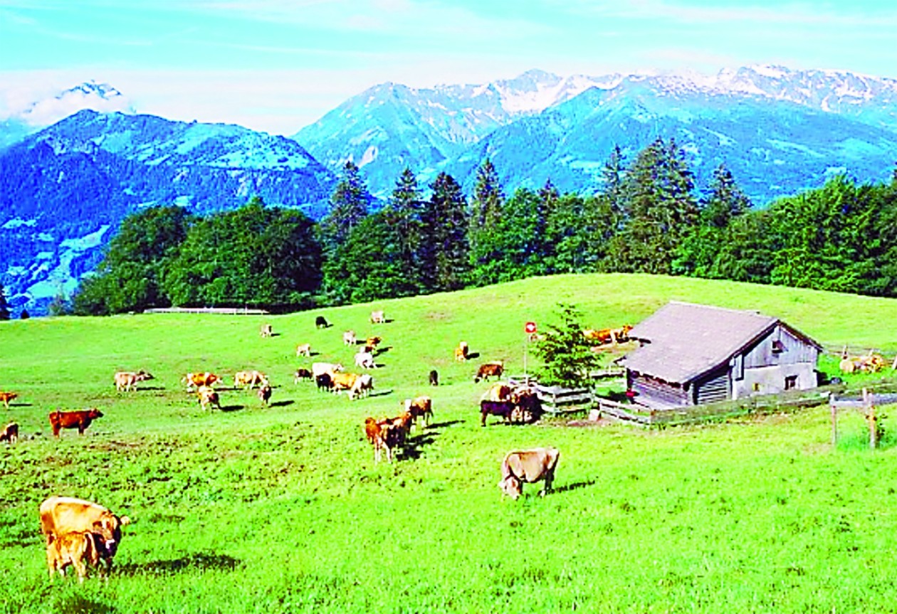 从迈恩费尔德出发,步行一个多小时可以到达海蒂村。这里以宏伟的阿尔卑斯山脉为背景,还原出19世纪末阿尔卑斯山村庄的生活景象。在去往海蒂村的路上,到处是宁静的牧场和葡萄园。这些牧场既是当地农户的收入来源,又是打造海蒂世界必不可少的元素。牛羊在绿色的山坡悠闲地吃草,木质马车停在农舍旁,小鸡小鸭踱来踱去,这一切完全是《海蒂》书中的情景重现。