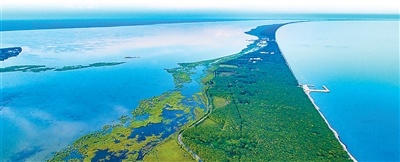 一条98公里长的沙岗,将兴凯湖分为大小两湖。在周边湿地和小兴凯湖的保护下,大兴凯湖水质始终保持优良,存储着230亿立方米的淡水资源。多年来,黑龙江兴凯湖国家级自然保护区与俄罗斯汉喀斯基国家级自然保护区在科研、宣教等领域密切交流合作,两国的生态保护者也结下了深厚的友谊。