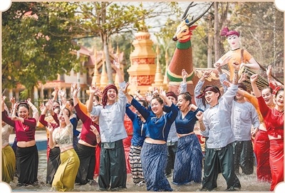 临沧所辖耿马傣族佤族自治县,近几年也有出了名的新奇事:泼水节“最火神曲”爆款出圈。2023年的《UP 耿马》更是火到境外,吸引缅甸、泰国等东南亚国家网友争相传唱模仿。今年泼水节主题歌舞《赛嗨》,以傣族民乐和西方交响乐巧妙融合,再次将延续千年的泼水祝福推向国际舞台。“民族曲”唱出“国际范儿”,民族歌舞跨越国界,成为中缅民间交往、文化交流的友谊金桥。