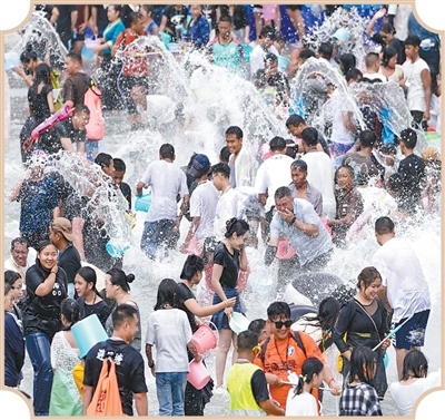 “中缅友谊歌汇、国门群众艺术节、印度洋海鲜啤酒文化节……”耿马县文化和旅游局副局长杨冰涛介绍,近年来,耿马县立足绚丽多彩的民族文化资源,组织形式多样的文化活动,吸引越来越多的海内外游客。这三年泼水节期间,全县接待游客数量持续增长。今年泼水节期间累计接待游客18.23万人次,同比增长12.88%,旅游总消费1.42亿元人民币,同比增长12.69%。