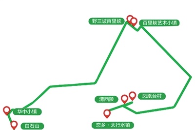 线路:野三坡百里峡—拒马河—百里峡艺术小镇—白石山风景区—华中小镇—清西陵—易水湖—恋乡·太行水镇—狼牙山