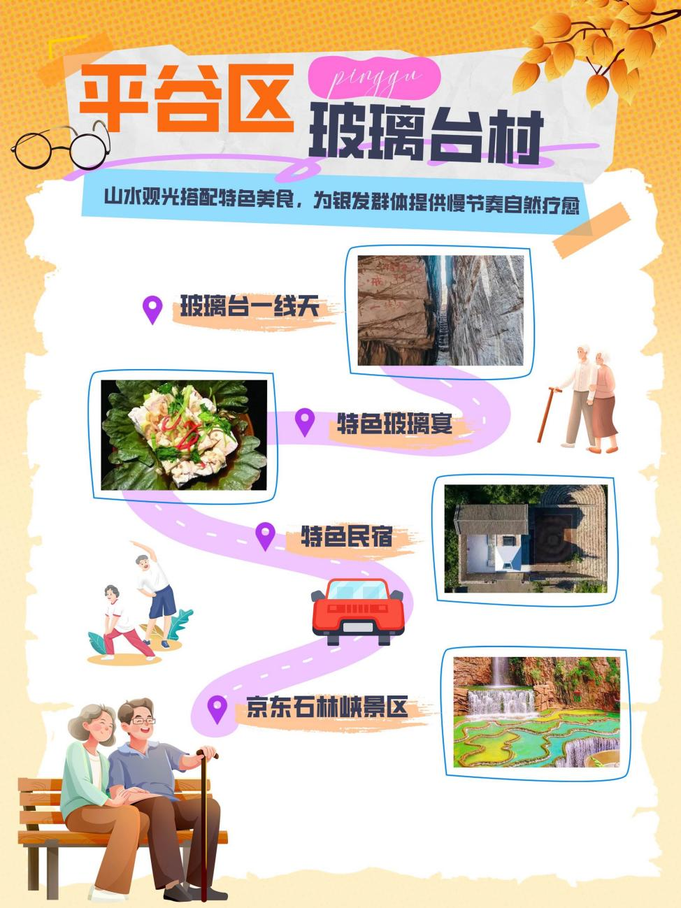 玻璃台村位于平谷区镇罗营镇,距离市区大约2小时车程。这条线路藏着京东地区的自然奇趣与特色风味,可以先打卡玻璃台一线天,漫步在两侧峭壁夹峙的狭长峡谷中,抬头可见“一线天光”。紧接着,步行10分钟左右就能品尝特色玻璃宴,以当地新鲜食材为原料,颜值与口感兼具,尽显地域特色。吃饱后,可以入住周边特色民宿,这里民宿多依山地而建,可赏山间风光、放松休憩。次日,从民宿出发,驱车25分钟抵达京东石林峡景区,赏奇山怪石与瀑布溪流,沉浸式感受自然之美。
