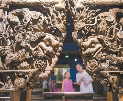 午后,最适合走进中国木雕博物馆。走过“世界木雕之都”门额下的木构牌坊,展厅内珍品琳琅满目:现代大型建筑的全屋装饰、传统世家大族的厅堂内景、旧时十里红妆的璀璨场景,以及世界各地的代表性木雕汇聚成艺术长廊。一尊高不及尺的五代木雕罗汉像,以穿越千年的微笑,轻漾着东阳木雕的旧时芳华,让人沉醉于小城1800多年的历史中。