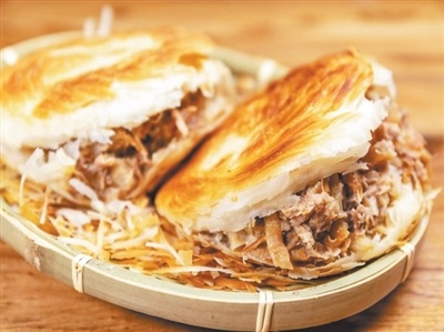 卤肉是肉夹馍的灵魂——精选关中猪肉,与香叶、肉蔻、草果在百年老汤中慢炖,肥肉化脂,瘦肉含香。而馍则成就了风味江湖:潼关千层饼酥脆掉渣,一口咬下簌簌落金;西安白吉馍则追求“铁圈虎背菊花心”,焦脆外圈、虎纹斑痕和内部的菊花状分层结构与卤肉腊汁珠联璧合。在“袁记”“樊记”“子午路张记”等老字号林立的西安街头,每一口都是千年技艺的当代叙事。