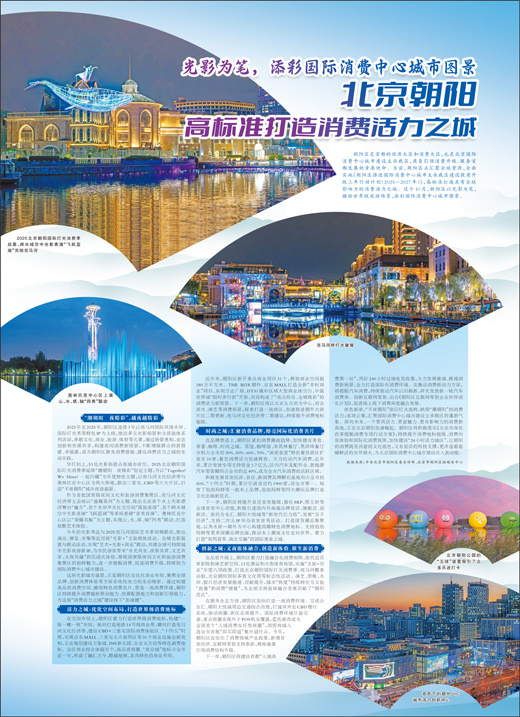 朝阳区是首都的经济大区和消费大区,也是北京国际消费中心城市建设主承载区,肩负引领消费升级、服务首都发展的重要使命。当前,朝阳区正汇聚全球资源,全面实施《朝阳区推进国际消费中心城市主承载区建设提质升级三年行动计划(2025—2027年)》,高标准打造具有全球影响力的消费活力之城。这个10月,朝阳区以光影为笔,描绘世界级夜游场景,添彩国际消费中心城市图景。