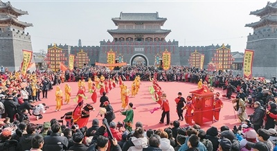 夜色苍茫,伴随一阵雄浑的鼓乐声,陕西西安城墙永宁门南广场上,徐徐展开一幅“大唐盛景”。光影交织中,大唐“文武百官”纷纷出城,迎接八方游客。这里是实景演出《梦长安—大唐迎宾盛礼》的现场,精彩表演瞬间点燃了游客的热情。