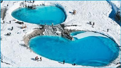 青海温泉的独特还在于“冰火交融”的感官体验:游客呼吸着海拔3000余米的高原清冽空气,浸泡于热气蒸腾的温泉池中,远眺雪山草原美景,十分惬意……
