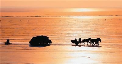 “冰上凿一排洞,杆子勾住水下渔网,2千米长的渔网,就这么从一个洞扯到下一个,是个耐心活呢。”冰镩打眼、扭矛走钩、冰下行网、马拉绞盘……没有船只机械,整个过程依靠人力完成。查干湖畔,农家乐老板曲丽敏也能熟练介绍冬捕习俗。冬季,曲丽敏的农家乐每天至少接待十几桌客人,农家乐的年收入在30万元左右。