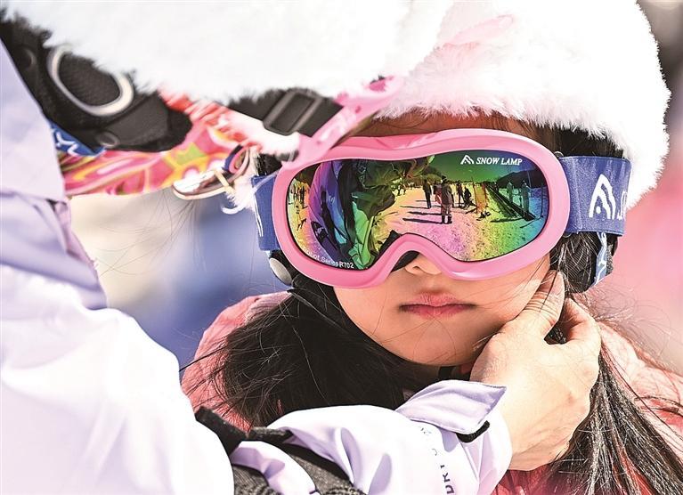 “戴好雪镜,雪杖不要套在手上。”梅花山滑雪场上,滑雪学校校长范伟坤正指导一批前来研学的孩子穿戴好装备。