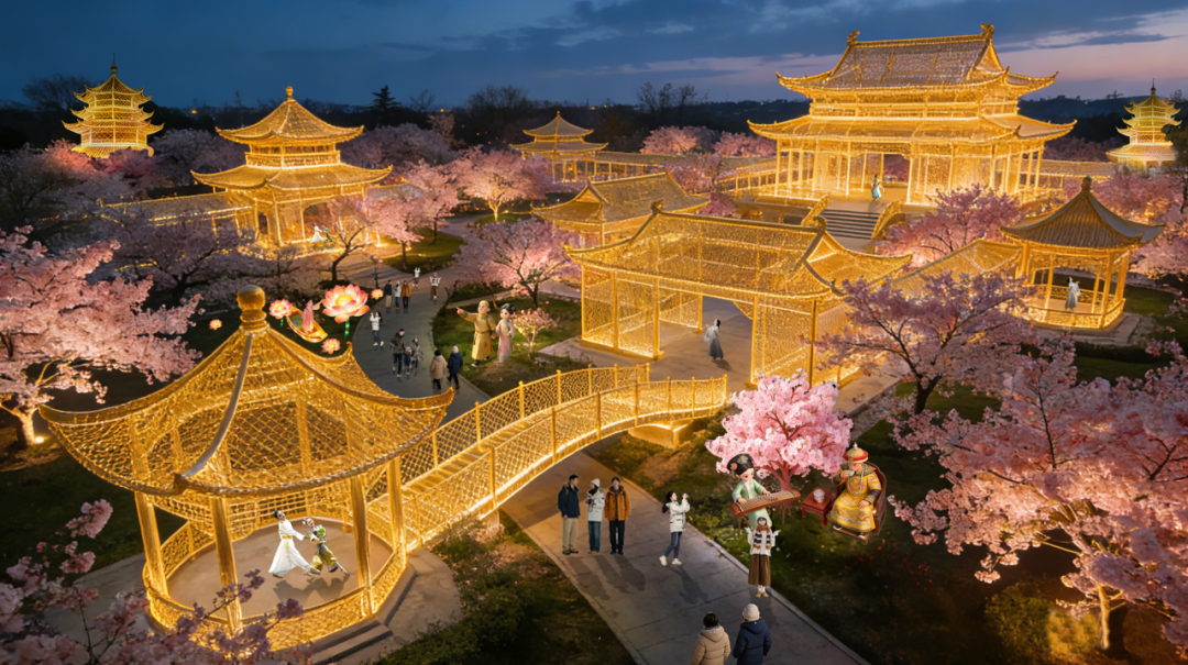 本次灯展将展出超大型主题灯组10组、特色造型灯组30余组及各色彩灯8000余盏,构建起层次丰富的夜间视觉景观。其中,“十二花神卷轴”灯组将传统花神意象化作流光画卷,“顺义八景”光影景观则诉说着本土文化故事,让游客在赏灯之余感受传统文化与现代创意碰撞的魅力。