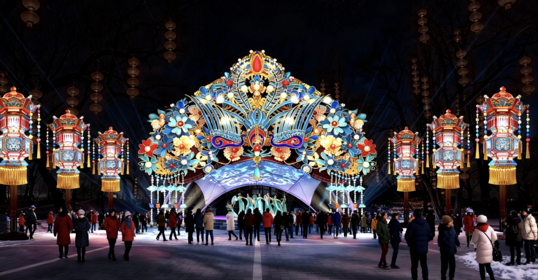 同庆街-颐和园东宫门会场以“骏马启新·同庆华年”为主题,通过《十骏图》艺术装置、花卉灯会、文化市集和歌舞杂技秀,实现历史场景与当代生活的诗意对话。
