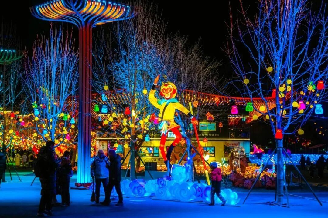 2026延庆双灯会独创“非遗花灯+龙庆峡冰灯”双灯合璧模式,世园花灯携手龙庆峡冰灯,联动上海美术电影制片厂有限公司经典作品《大闹天宫》,合作推出“延庆双灯会”品牌活动。