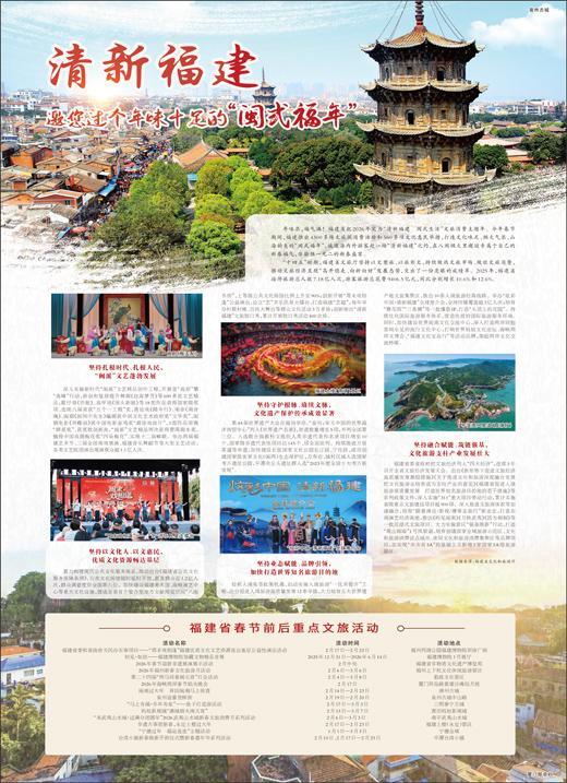 年味浓,福气满!福建省把2026年定为“清新福建 闽式生活”文旅消费主题年。今年春节期间,福建推出4300多场文旅促消费活动和560多项文化惠民举措,打造文化味足、烟火气浓、山海韵美的“闽式福年”,诚邀海内外游客赴一场“清新福建”之约,在八闽烟火里邂逅专属于自己的新春福气,体验独一无二的新春盛宴。