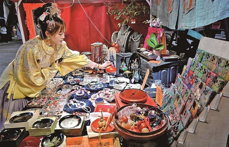 从线上接单到线下出摊,孙季发现来逛集市的年轻人越来越多。“一次市集能逛上百家店,每家买一两样也不用考虑邮费,还能参加盖章、抽奖互动。这种体验,是网购给不了的。”孙季还注意到,很多年轻人在她摊位前驻足许久,“不着急买,就是想看看、摸摸、聊几句。这种纯粹‘逛’的状态,在商场里不太容易见到。”