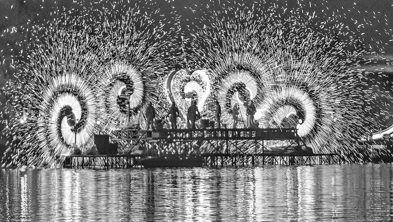2月23日,正月初七,夜幕降临,湖南湘潭万楼的一场非遗打铁花表演将夜色点亮。千度铁水泼向夜空,如金色烟花般璀璨绽放,引起惊呼声不断,人们纷纷举起手机记录下这精彩的瞬间,这其中,也不乏外国游客的身影。英国游客安妮拿着自拍杆一边与朋友拨打视频一边感叹:“这是我来中国最难忘的一次体验,太震撼了!”