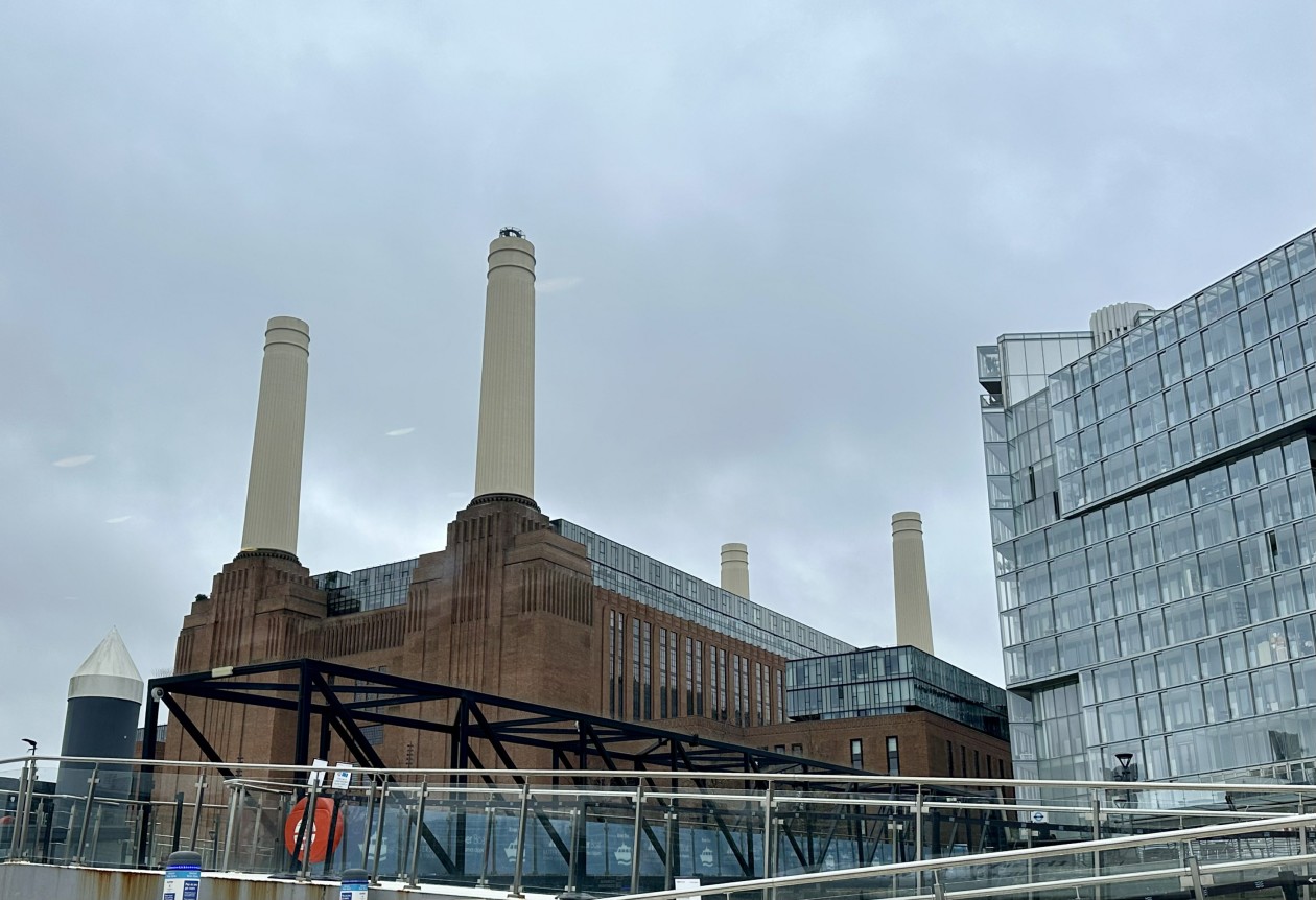 站在泰晤士河南岸的巴特西发电站前,很难不被那4根笔直的白色烟囱吸引。发电站深红色的砖墙在阴晴不定的伦敦天空下显得格外厚重,在它周围,一栋栋玻璃幕墙的建筑高低错落,曲线柔和灵动。历史与时尚、厚重与轻盈,在这里形成了鲜明的对比与融合。从能源中枢到“烂尾地标”,再到城市焕新的文化符号,这座建筑的命运可谓一波三折。