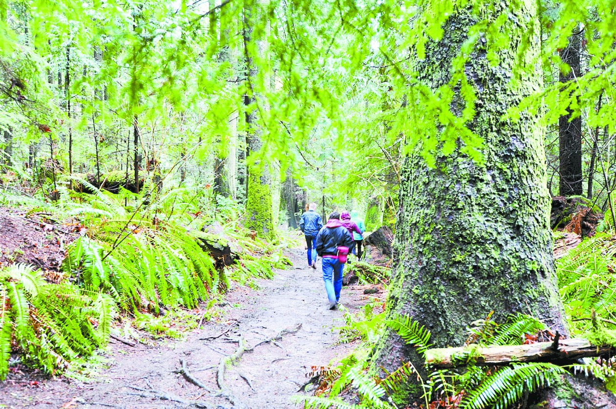 吉布森斯人最爱来索姆斯山省立公园徒步,呼吸更为清新的空气,几条强度不同的小径将人引向山顶。林间小路并无任何人工修饰,游人或迈过水洼,或踩过厚厚的落叶,即使是安全护栏和台阶也是原木木板搭就,融入无边的苍翠。其中,最陡的一条路线最后需踏完434步天梯,方可到达顶端。