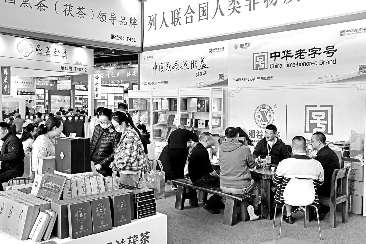 安化黑茶制作技艺是益阳核心文旅IP。在益阳茶厂展台前,工作人员正冲泡展示“非遗1501颗粒茯茶”。“这款产品由国家级非遗代表性传承人研发,把百年茯砖茶传统造型转化为便携颗粒装,荣获2025湖南省文化旅游商品大赛金奖。”企业相关负责人介绍。