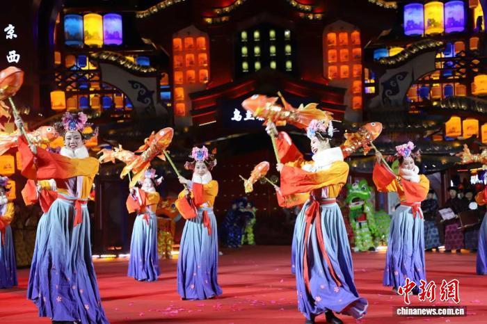 夜色渐浓,打铁花、火壶、火裙舞等非遗表演轮番登场。身着宇航服的演员携机器狗共舞《飞天利箭》,让科技与文化撞个满怀,游客纷纷举起手机拍照。“没想到在年俗活动上,还能看到这么酷炫的机器人舞蹈。”游客段丽芳说。