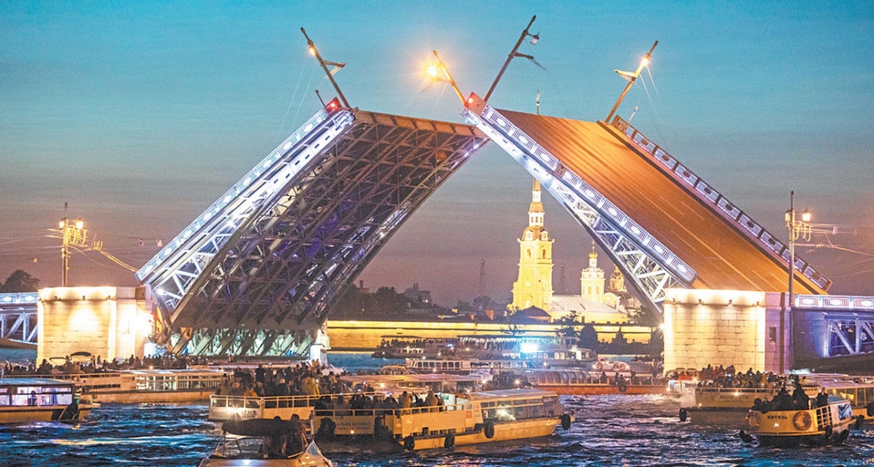 几乎所有的游船公司都提供著名的“开合桥游览”项目。这次体验应该列在每个人的旅游清单上,这也是使圣彼得堡变得非常独特的原因。该项目为游客近距离观看桥梁升“两翼”提供了绝佳机会,比在人满为患的河岸观看要舒适得多,也更令人惊叹。夜游的最佳时间是六七月,也就是著名的“白夜”期间。当然,从4月到10月底的其他时间也可以。夜游的价格至少900卢布(约合14美元)。
