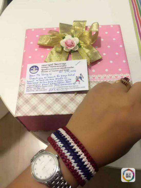 杨莉说,她9月底回国后,荣获南京市旅游委员会授予的“最美导游”称号,并受到了国内多家媒体的关注,如今还得到泰国有关方面的关注,这一切都在意料之外。科甘赠送的纪念品令她感觉十分贴心。