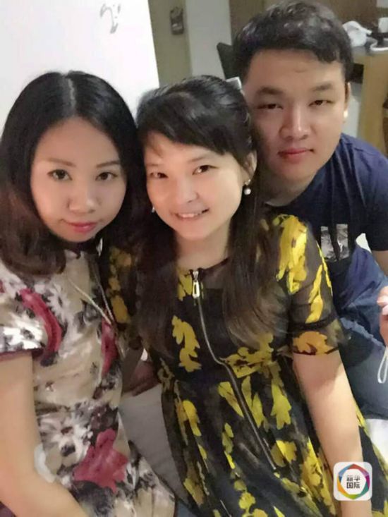杨莉(左)与受伤游客的领队罗琳以及献血的唐山小伙。(图片由杨莉提供)
