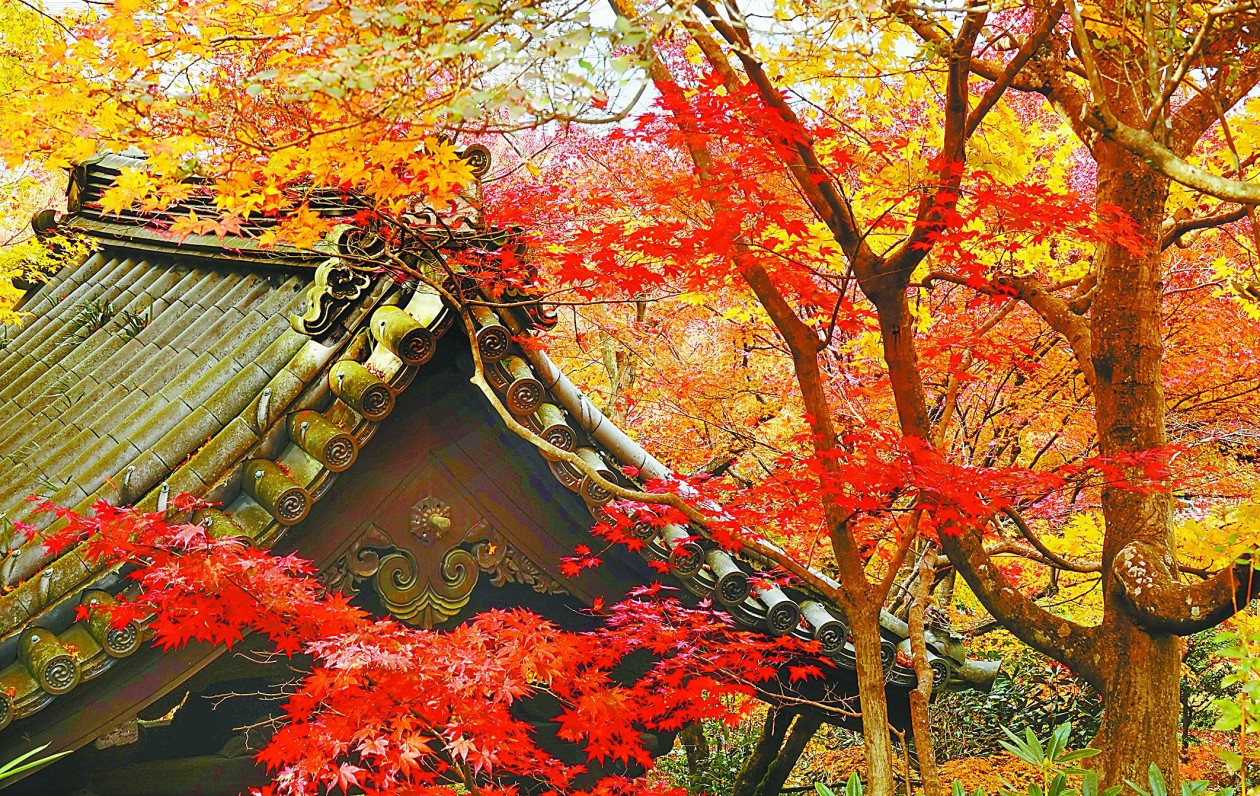 【环球时报赴日本特约记者 凌晖】日本红枫树姿优美,春夏季新叶开始吐红,秋季最红。日本秋季漫长,且多枫叶红叶,已被视为世界上红叶最美的国家之一。日本列岛狭长,每年入秋后,叶片从北端的北海道开始泛红,随着冷空气不断南下,红叶渐渐蔓延到关东、九州等地区。日本旅游局官网发布信息说,2017年日本京都大部分寺庙最佳赏枫期约在11月下旬—12月上旬。笔者前不久专门去日本京都来了一次“红叶狩”。古时日本人把秋天在野山观赏红叶叫作“红叶狩”,“狩”意为“观赏”。