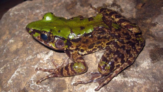这种彩色青蛙名叫目茨玛尼臭蛙(Odorrana Mutschmanni),是2016年科学家在越南东北部的森林里发现的。