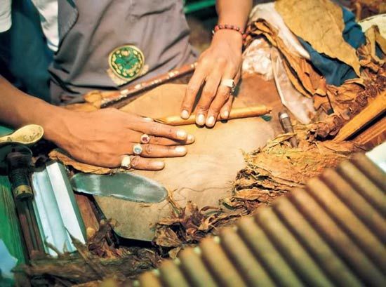 古巴雪茄制作师何塞•卡斯特拉尔因在哈瓦那制成长81.8米、直径4厘米的雪茄而再度刷新了吉尼斯世界最长雪茄纪录。据说,他14岁起学艺,卷烟技艺精 湛,沙特王子等世界名流都购买他卷制的雪茄。他对雪茄的痴迷无法以任何文字形容,或许他的生命正是因雪茄而生。时至今日,制作雪茄的过程已不再是一道道繁 琐、重复的工序,而是耐人寻味的一次次艺术创作。在古巴,有很多像卡斯特拉尔这样的制作师,他们早已历经千锤百练,成为了真正的艺术家。
