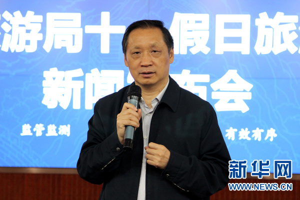 10月1日,国家旅游局局长李金早出席国家旅游局十一假日旅游工作新闻发布会并讲话。 新华网 郭香玉摄